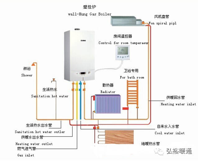 壁挂炉内的采暖热水和卫生热水都有其独立的管道系统,二者不发生混合。