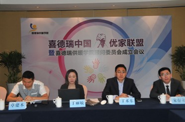 喜德瑞中国牵手优家联盟暨喜德瑞供暖学院顾问委员会成立会议在美丽的浙江湖州雷迪森大酒店隆重举办。喜德瑞中国区总裁谢新天和优家联盟核心成员四川美景舒适家居总经理张华春、江苏科宁舒适家董事长王宇彤、武汉广华供暖总经理刘江、合肥擎天冷暖公司总经理程牧以及采暖行业优秀企业家代表合肥保乐机电总经理徐明江、北京东方永捷董事长王海军、上海永乐楼宇执行董事王振江、湖南华成爱尚家总经理李长健,,上海建筑材料行业协会采暖分会会长黄军,上海世进管材公司总经理林玉中,美国沃茨水工业集团亚太区总裁Elie Melhem,等优秀行业企业家代表,以及暖立方传媒总裁张克诚,暖立方传媒总经理杨荔等近30人出席会议。